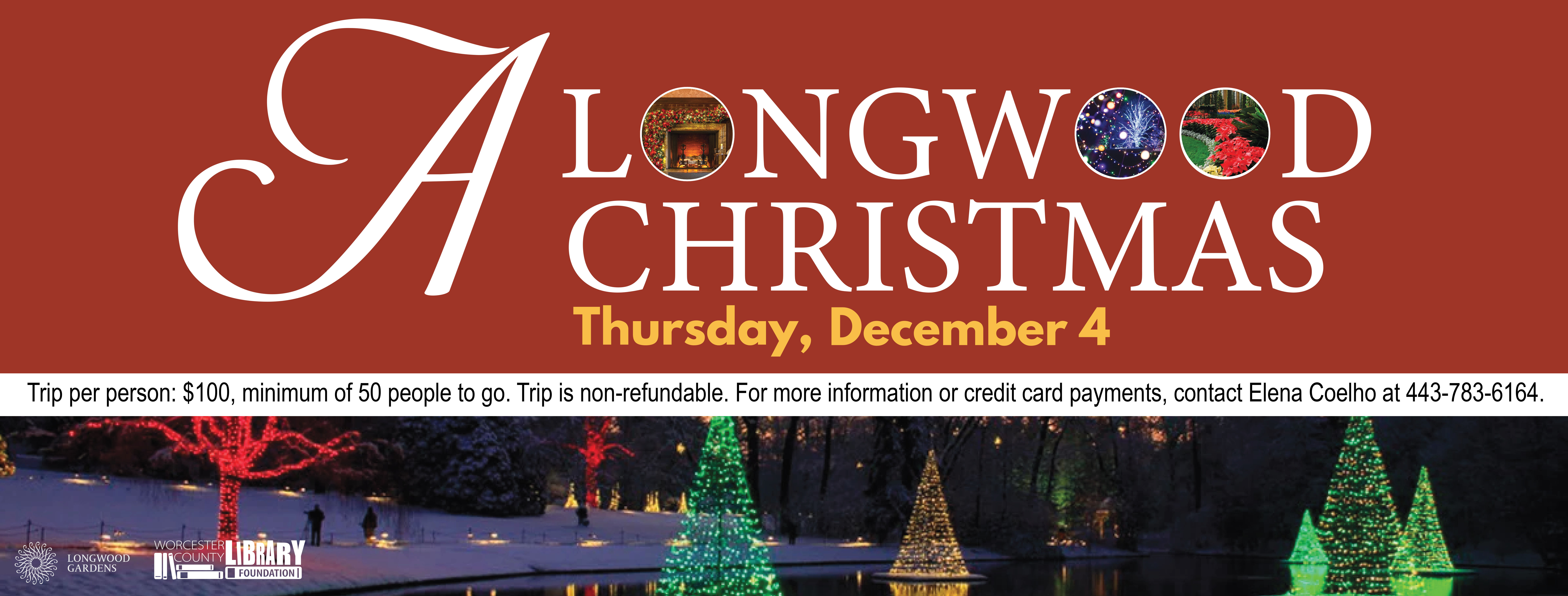 Join the Worcester County Library Foundation for a magical trip to Longwood Gardens! Enjoy more than 500,000 lights, colorful fountains, and gardens of bloom. The new West Conservatory is now open...